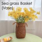 シーグラス バスケット フラワーベース かご 花瓶 海草 わら 水草 花びん 持ち手 かご カゴ 荷物入れ ピクニック 収納カゴ かごバスケット おしゃれ 可愛い