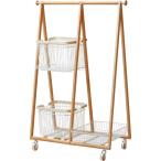 バスケット付きポールハンガー スチールハンガー 天然木製[t]