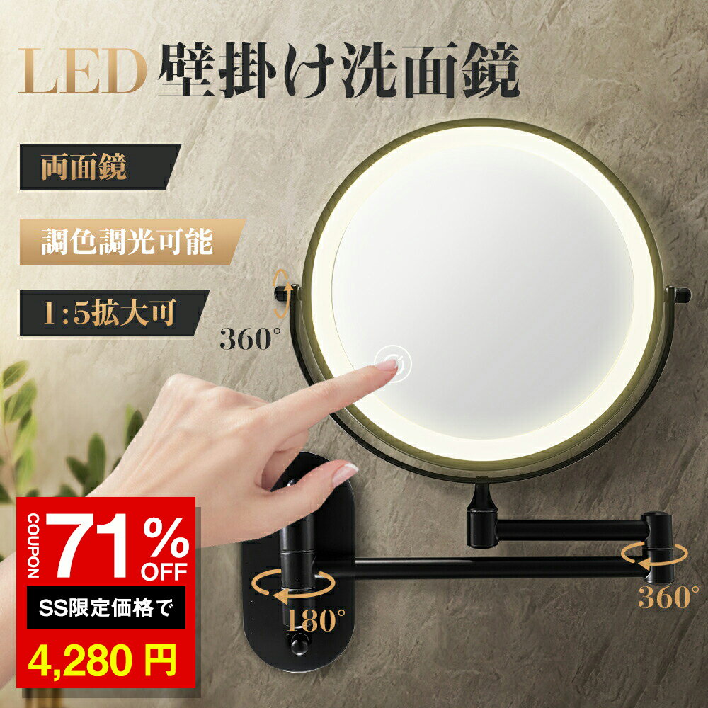 【PT10倍+10%OFFクーポン】鏡 両面化粧鏡 壁付け LEDライト付き おしゃれ 拡大鏡 両面鏡360度回転 折りたたみミラー USB充電式 ミラー ホテル 風呂 洗面所 浴室 LED 3倍/5倍/7倍/10倍 父の日