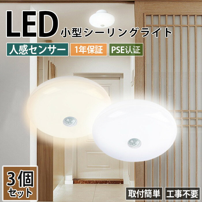 【全店舗7%OFFクーポン】LED 小型 シーリングライト 小型 人感センサー920lm 薄型 省エネ 人感 自動点灯/消灯 3畳 照明 天井 明るい 薄型 消費電力8W 取付簡単 リビング 玄関 寝室 和室 階段 台所 廊下 キッチン トイレ バスルーム pse認証済み