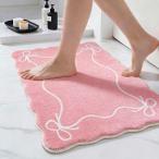 【並行輸入品】ライトピンクボウバスマットかわいいバスルームラグ、ソフト吸収ボウカーペット、ガーリーバスルーム装飾ラグノンスリップ&洗濯機洗い可能