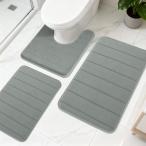【並行輸入品】KescherAb バスルームラグ3点セット ウルトラソフト 高密度フォーム バスラグ PVC裏地付き、吸収性ライトグレーバスカー