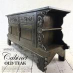 アジアン家具 キャビネット 木製 アンティーク チーク チェスト オールドチーク 古木 アジアン 家具 無垢 彫刻 収納棚 おしゃれ
