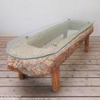 希少 オールドチーク ガラス 丸太 テーブル 155cm×50cm×42cm 木製 木 おしゃれ 総無垢材 センターテーブル
