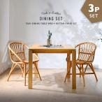 アジアン家具 ダイニング3点セット 2人用 チークテーブル80cm角 ラタンチェア T310X388X2 爆買