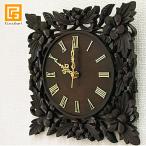 木製レリーフ時計 ロータス24cm アジアン雑貨 バリ 掛け時計 壁掛け おしゃれ 蓮 木彫り バリ風 開店 新築 結婚 祝い ココバリ