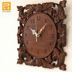 木製レリーフ時計 ロータス(スペシャル)28cm レーザー彫りタイプ アジアン雑貨 バリ 掛け時計 壁掛け おしゃれ 蓮 木彫り ココバリ