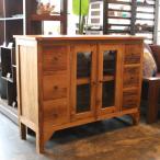 収納棚 サイドボード 引き出し ガラス扉 ラック 棚 飾り棚 チーク無垢材 ナチュラルアンティーク