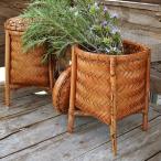 アジアン バリ 雑貨 ♪ロンボク島の4本足ミニバスケット蓋付♪ インテリア おしゃれ エスニック かご トイレットペーパー収納 鉢カバー