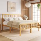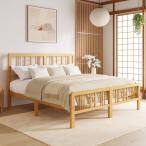【並行輸入品】FDLOGW 高さ14インチ ソリッドバンブーウッドプラットフォーム クイーンベッドフレーム ヘッドボード付き ベッドフレーム ク