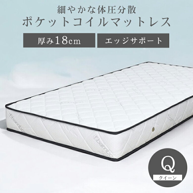 【12/4 20:00から使える★4h限定5%offクーポン配布中】 クイーンマットレス ポケットコイル 厚み18cm クイーンサイズ マットレス ポケットコイルマットレス 両面 三層構造 通気性 エッジサポート 竹繊維生地 綿 ポリフェルト ウレタン ホワイト 新生活