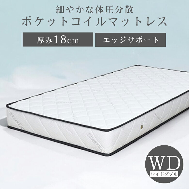 【12/4 20:00から使える★4h限定5%offクーポン配布中】 ワイドダブルマットレス ポケットコイル マットレス ワイドダブル 厚み18cm ポケットコイルマットレス 両面 三層構造 通気性 エッジサポート 竹繊維生地 綿 ポリフェルト ウレタン ホワイト 新生活