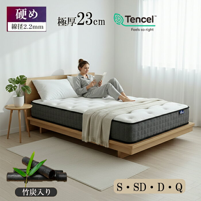 【SS限定50%OFF】マットレス シングル セミダブル ダブル クイーン硬め固め ベッドマットレス 極厚23cm 通気 腰痛対策 高反発 高耐久 ポケットコイル スプリングマット コイルマットレス 快眠 体圧分散 抗菌 防臭 竹炭 シングルマットレス 寝返りサポート