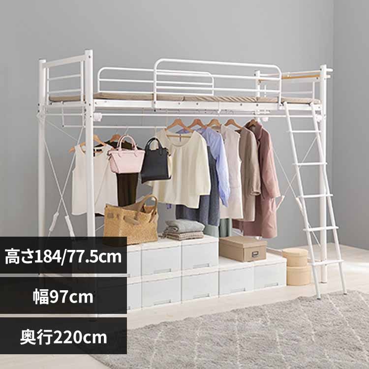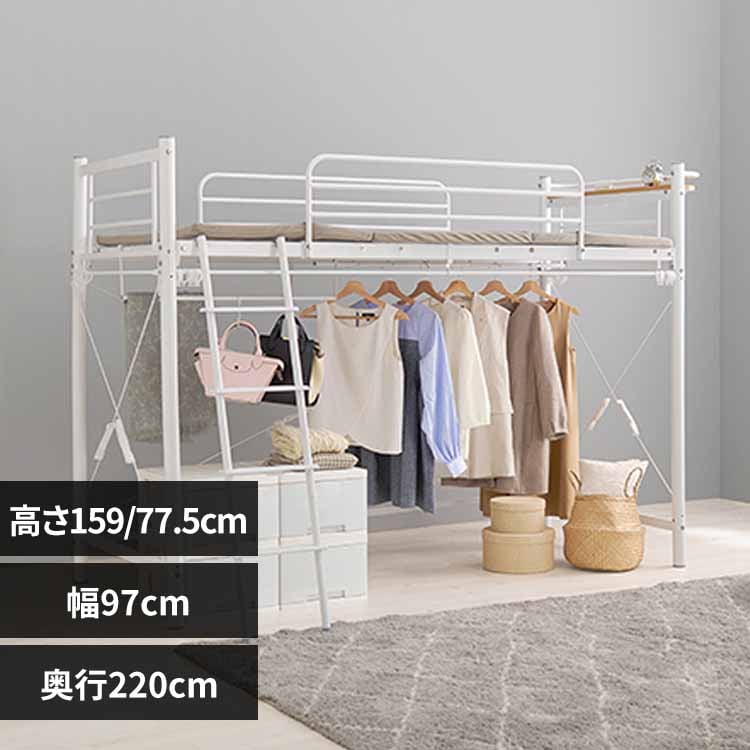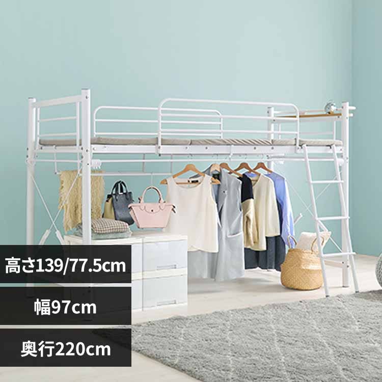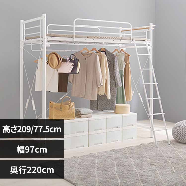 ホームテイスト 階段付パイプロフトベッド Rostem-ロステム- ホワイト 幅2550×奥行1000×高さ1735mm HT70-102--WH(直送品)