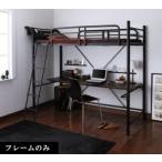 ベッド ベット ロフトベッド パイプベッド シングル ハイタイプ 大人 デスク付き はしご サイドガード 黒 ブラック ベッドフレームのみ