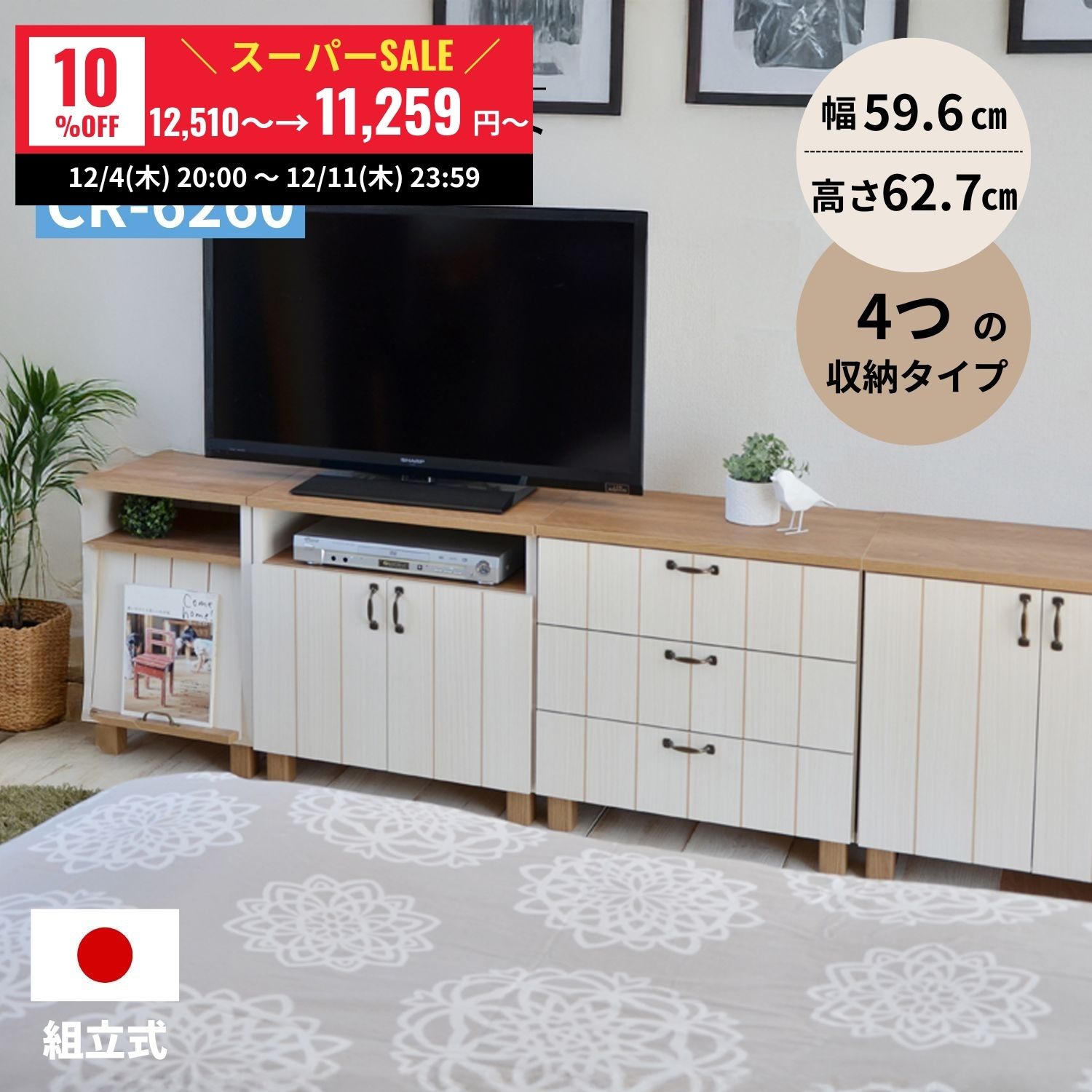 寝室 フレンチカントリー 幅60cm サイドチェスト 収納 ローボード ローチェスト テレビ 棚 引き出し オープン 扉 日本製 ロータイプ セパレート carina コンパクト 隠す リモコン収納 白商...