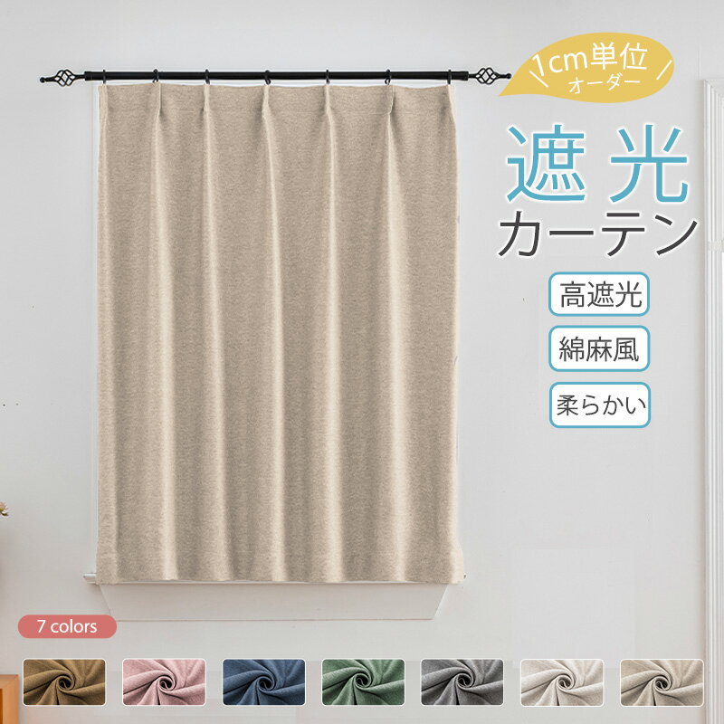 【5%offクーポン】【1cmオーダー】遮光カーテン レースカーテン付き選択可 小窓 リネン 高遮光 綿麻風 遮熱 断熱保温 無地 形状記憶 カフェカーテン おしゃれ ナチュラル フック付き 省エネ 節電 遮像 間仕切カーテン UVカット 厚手 ロング シンプル北欧