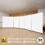 ホワイトボード 事務所 オフィス マグネット対応 脚付き 6連 パーテーション 白板 おしゃれ 目隠し 脚付き キャスター付き (5400mm×1800mm) コマイ