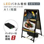 LEDパネルグリップ式 A型看板 バッテリー付 3点セット A1サイズ 両面 ブラック 屋外対応 W640mm×H1200mm(3set-bat-lps-a1d-bk)