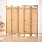 衝立 5連 高さ160cm ラタン 天然木 折りたたみ 間仕切り ( パーテーション スクリーン 籐 目隠し 自立式 ついたて )