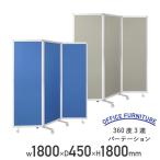 360度3連パーテーション W1800 D450 H1800 スチール 布貼り 三つ折り 衝立 ローパーテーション キャスター ブルー/グレー 代引不可 法人宛限定 NI-NNR3C