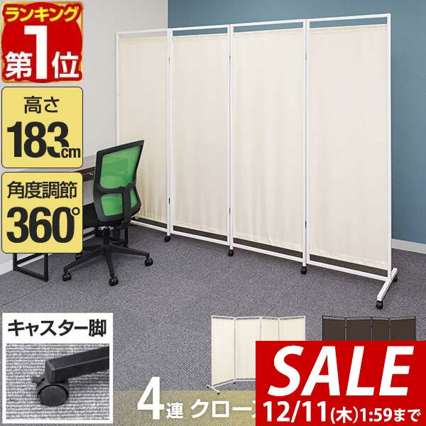 【11,550円→SALE10,450円〜12/11(木)01:59まで】【楽天1位】パーテーション 間仕切り 高さ183cm 4連 キャスター付き 安定足 直線 自立 可動式 360度 折りたたみ 組み立て 布張り 衝立 4面 4枚 四つ折り 目隠し 仕切り スクリーン ついた ■[送料無料]