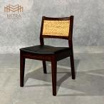 ウォーターヒヤシンス チェア 椅子 ダイニングチェアー アジアン家具 マホガニー イミテーションレザー黒 おしゃれ 安心1年保証 [MITRA ミトラ]