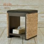 ウォーターヒヤシンス スツール 収納棚付き アジアン家具 マホガニー 座面イミテーションレザー黒 おしゃれ 安心1年保証 [MITRA ミトラ]