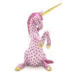 ヘレンド 一角獣 ピンクの鱗模様 ユニコーン 手描き フィギュリン 置物 飾り物 Herend