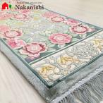 玄関マット キッチンマット ランナー ロングマット かまち シルク 中国段通 約40×122.5cm 120段 ピンク&グレー系 dt-a365