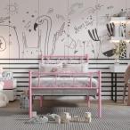 【並行輸入品】SENLOO ツインサイズ メタルプラットフォーム ベッドフレーム ヘッドボード付き ピンク かわいいキティデザイン 多機能収納袋