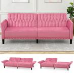 【並行輸入品】Lesofair 77インチ ベルベットソファベッド 調節可能なアームレストと背もたれ付き タフテッド コンバーチブル布団ソファ