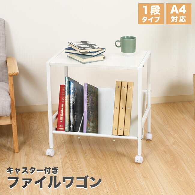 【楽天スーパーSALE10%OFF】ラック キャスター 1段 ファイルワゴン 55×37×58cm 本棚 白 ホワイト 収納 スリム ファイルラック 斜め 傾斜 取り出しやすい 整理整頓 A4