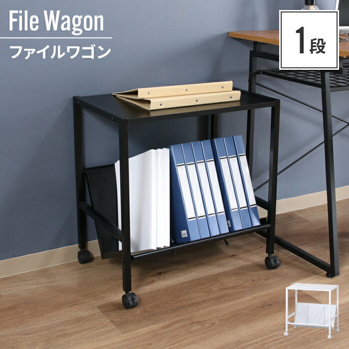 【期間限定10%OFF】ファイルワゴン 1段 キャスター付き ファイル A4 デスク オフィス 斜め棚 机下収納 ファイルラック サイドワゴン 本棚 本 雑誌 書類 整理 収納 本棚 書斎