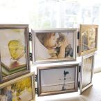 フォトフレーム 2l / l判 2面 木製 写真立て 2枚/4枚 ガラス 2つ折り 回転式 縦置き おしゃれ かわいい 折りたたみ 卓上 両面 プレゼント