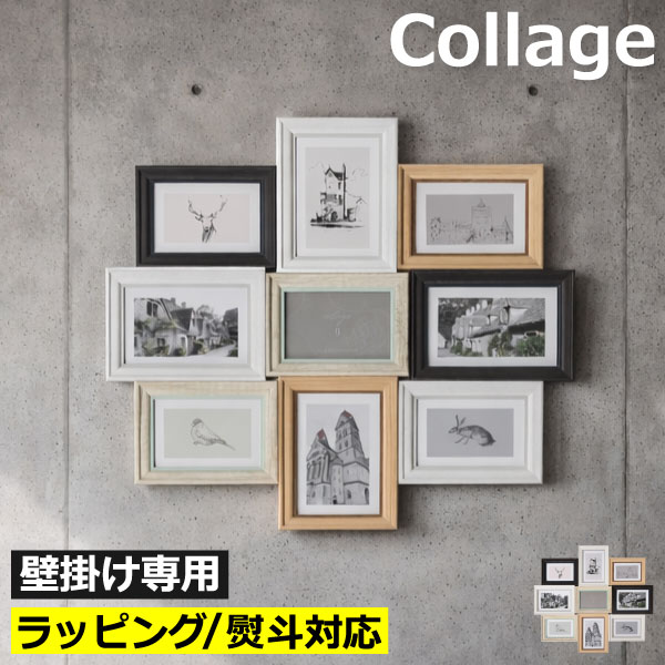 フォトフレーム 壁掛け 写真立て 大型 ディスプレイ 9枚 ポストカード 丸 KG判 対応 新生活 ウォールフォトフレーム ブラック L判 Lサイズ KG ポストカード