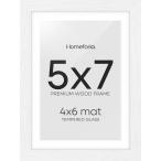 Homeforia 5x7インチ 写真フレーム ホワイト ハイエンドホワイト木製フレーム 5x7インチ 壁または卓上用 5x7ホワイトフォトフレーム マット付き 4x6インチ 強化