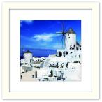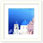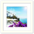 ファブリックパネル アートフレーム 飾り おしゃれ 景色 壁掛け ウォールデコレーション 海 地中海 風景 情景 海辺 街並み 青空 Lサイズ 525x525mm