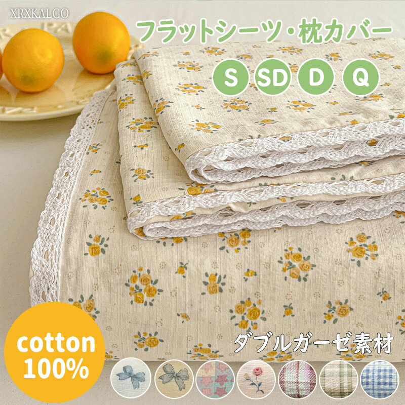 「期間限定 全品8%OFFクーポン」フラットシーツ 枕カバー コットン100% 全綿 レース飾り 120x230 180x230 235x250 チェック 花柄 介護シーツ ベッドシーツ マットレスカバー シート 無地 生理介護 赤ちゃん 布団シーツ 春夏秋冬