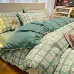 爆買 格子柄掛け布団カバー クイーンサイズ 格子柄 寝具セット チェック柄 寝具 掛け布団カバー コットン ギンガムチェック 寝具カバー フラットシーツ