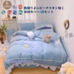 爆買 布団カバー セット シングル 3点セット 敷き布団用 おしゃれ 布団カバー フラットシーツ 枕カバー ダブル 4点セット ピーチスキン 掛布団カバー