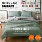 掛け布団カバー 4点セット ワイドダブル フラットシーツ ボックスシーツ 枕カバー 布団カバー 洗える 寝具カバーセット 無地 北欧 新生活 220*240cm