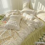 韓国風 寝具 布団カバーセット シングル セミダブル 綿 レディース 姫系 フリル 花柄 ベッドカバー フラットシーツ 掛け布団カバー 洗える 防菌 防ダニ
