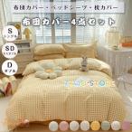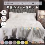 韓国風 寝具カバー 布団カバー4点セット 夏 姫系 可愛い 薄め ベッドカバー フラットシーツ 掛け布団カバー 無地 柔らかい 通気 洗える