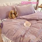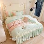 韓国風 布団カバー4点セット セミダブル ダブル 姫系 寝具 ベッドカバー 掛け布団カバー フラットシーツ ベッドスカート 四季通用 洗える