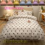 布団カバーセット ドット柄 可愛い 棉 寝具 ベッドカバー 3点セット シングル セミダブル 掛け布団カバー シーツカバー フラットシーツ ボックスシーツ