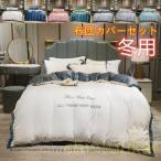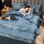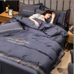 北欧風 ベッドカバー 布団カバー4点セット セミダブル ダブル 掛け布団カバー 無地 刺繍付き 可愛い 高級感 夏用 フラットシーツ ボックスシーツ シルク風