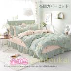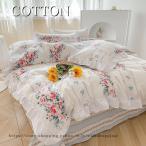 韓国風 寝具 布団カバーセット シングル セミダブル 綿 レディース 姫系 フリル 花柄 ベッドカバー フラットシーツ 掛け布団カバー 洗える 防菌 防ダニ
