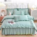 ベッドカバー コットン 布団カバーセット シングル 4点セット 掛け布団カバー ベッドスカート オシャレ 柔らかい 韓国風 ダブル 洗える 全40色