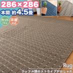 秋冬の準備クーポン ラグ カーペット 本間 4.5畳 286×286 ストライプ シンプル 無地 フリーカット 4.5帖 ラグマット おしゃれ 平織り 絨毯